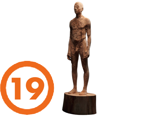 Das Besondere an Aron Demetz‘ Figur ist ihre nur scheinbar grobe Ausführung. Tritt man näher, werden die fein herausgearbeiteten Jahresringe des Holzes sichtbar. Auch wenn das Leben uns mit seinen Erfahrungen hart trifft, so wie grobes Werkzeug das Holz dieser Skulptur bearbeitet, können wir dennoch aufrecht wie ein Baum stehen. Wie diese Figur sind wir in einem Grund verwurzelt, der uns tragen will und aus dem unser Leben Form und Gestalt erhalten kann.